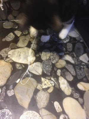 Seems in his continuing effort to get out, Smudge has developed a new skill that has resulted in most of the excess mastic being removed from the back door, he is now perfecting this skill trimming excess mastic from the kitchen windows.